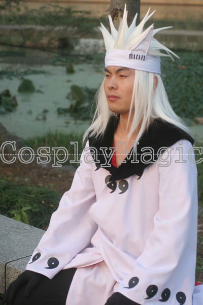 - White robe with six magatama markings across the chest