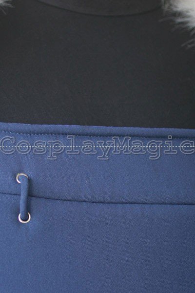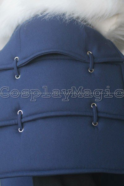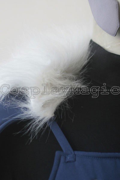 - Black suit with white fur collar