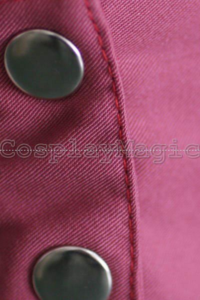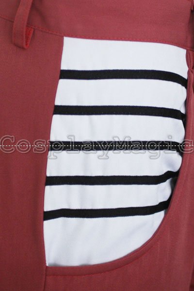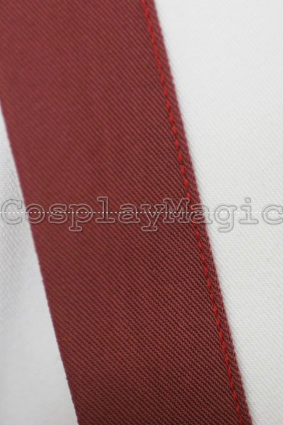 - Long-sleeved white blouse with red edges and yellow fastening buttons