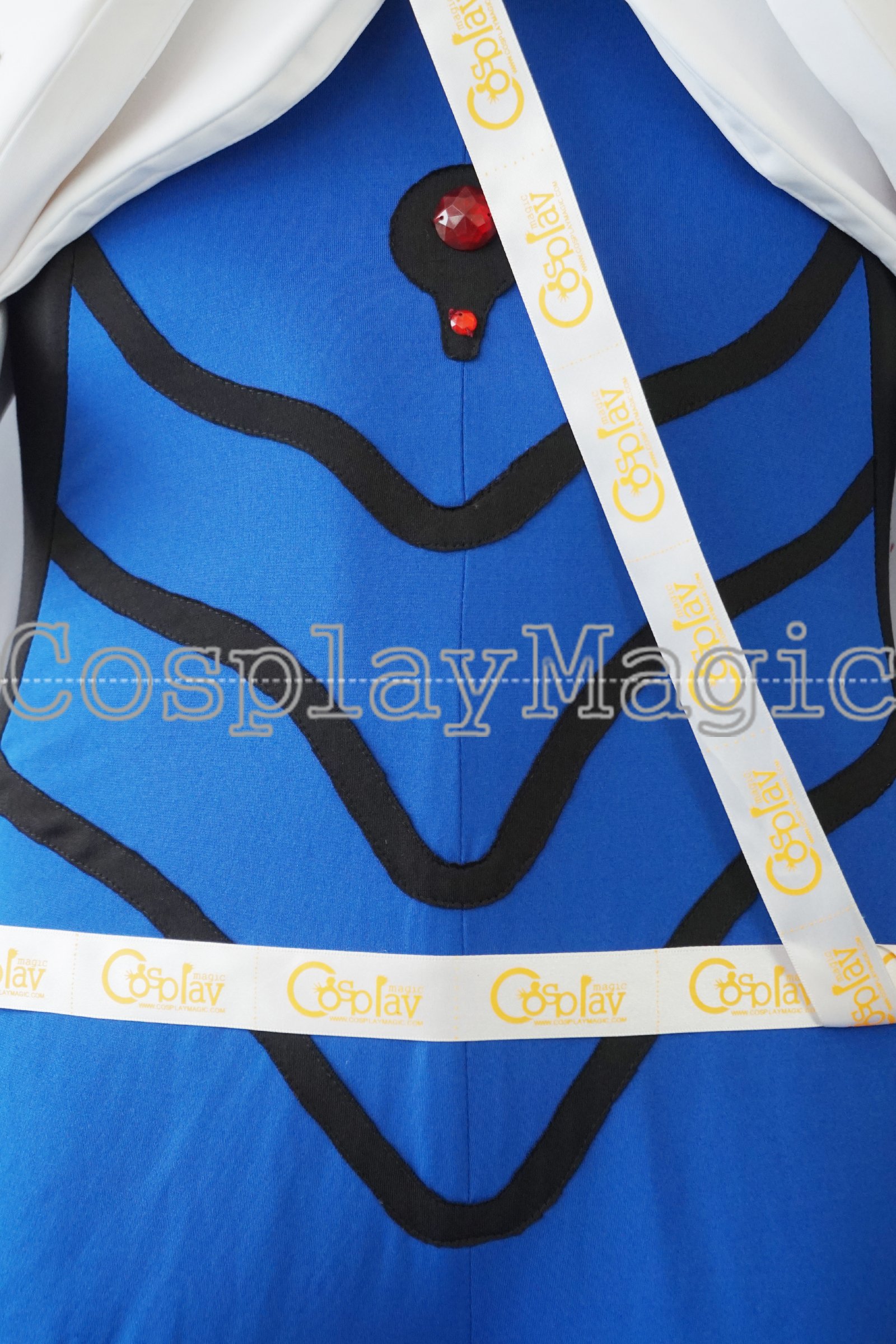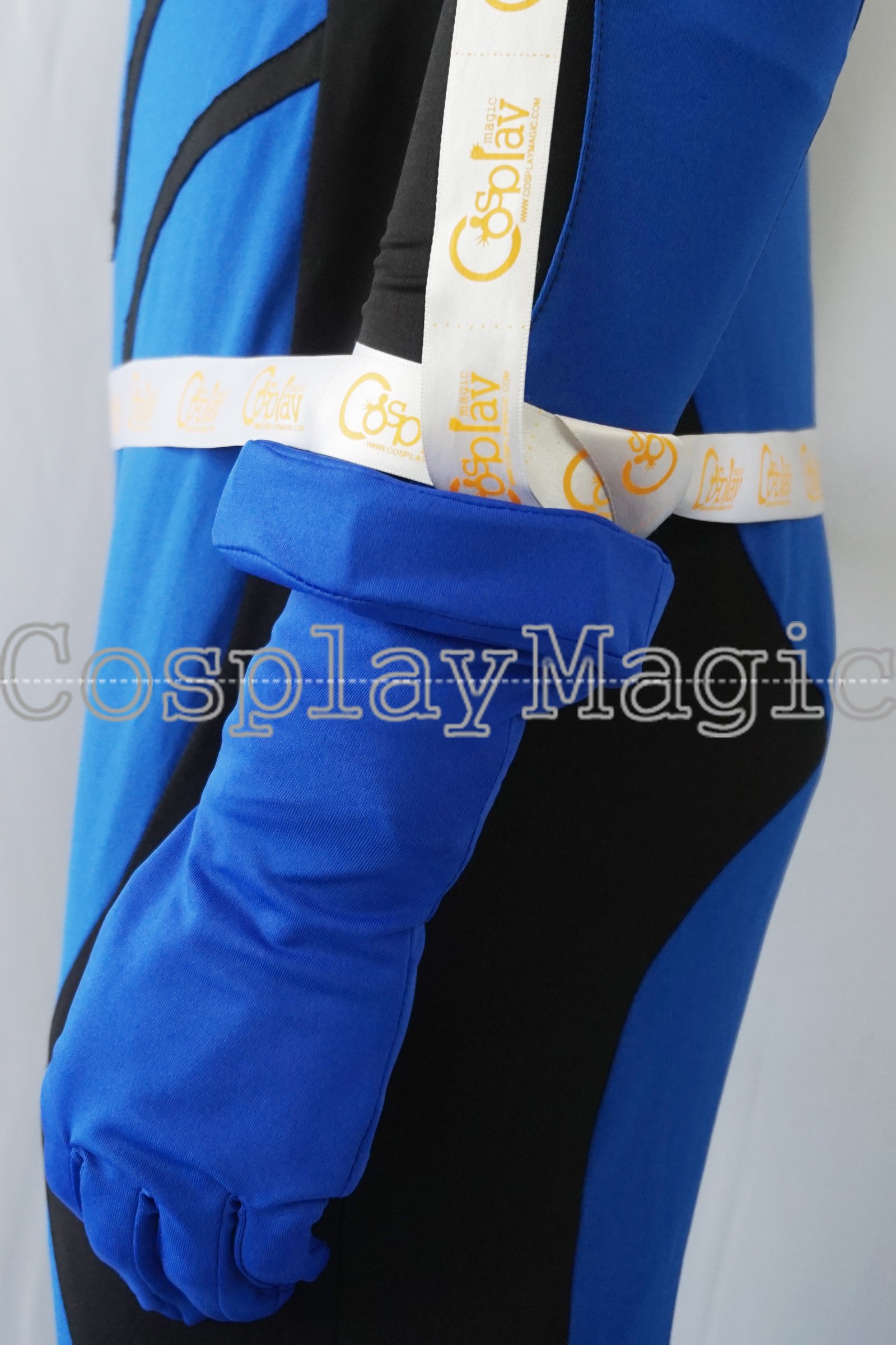 - Blue skin-tight suit with black stripes