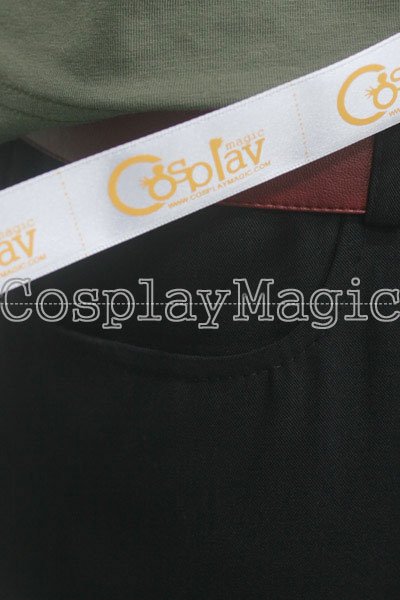 - Black trousers with dark red faux leather belt