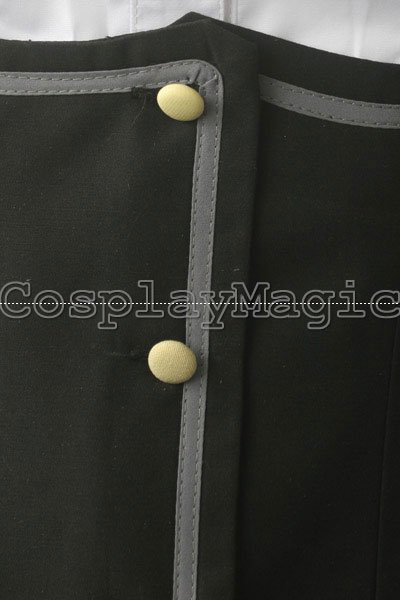 - Black vest with a large gap emphasizing the chest area, 3 yellow buttons in the front