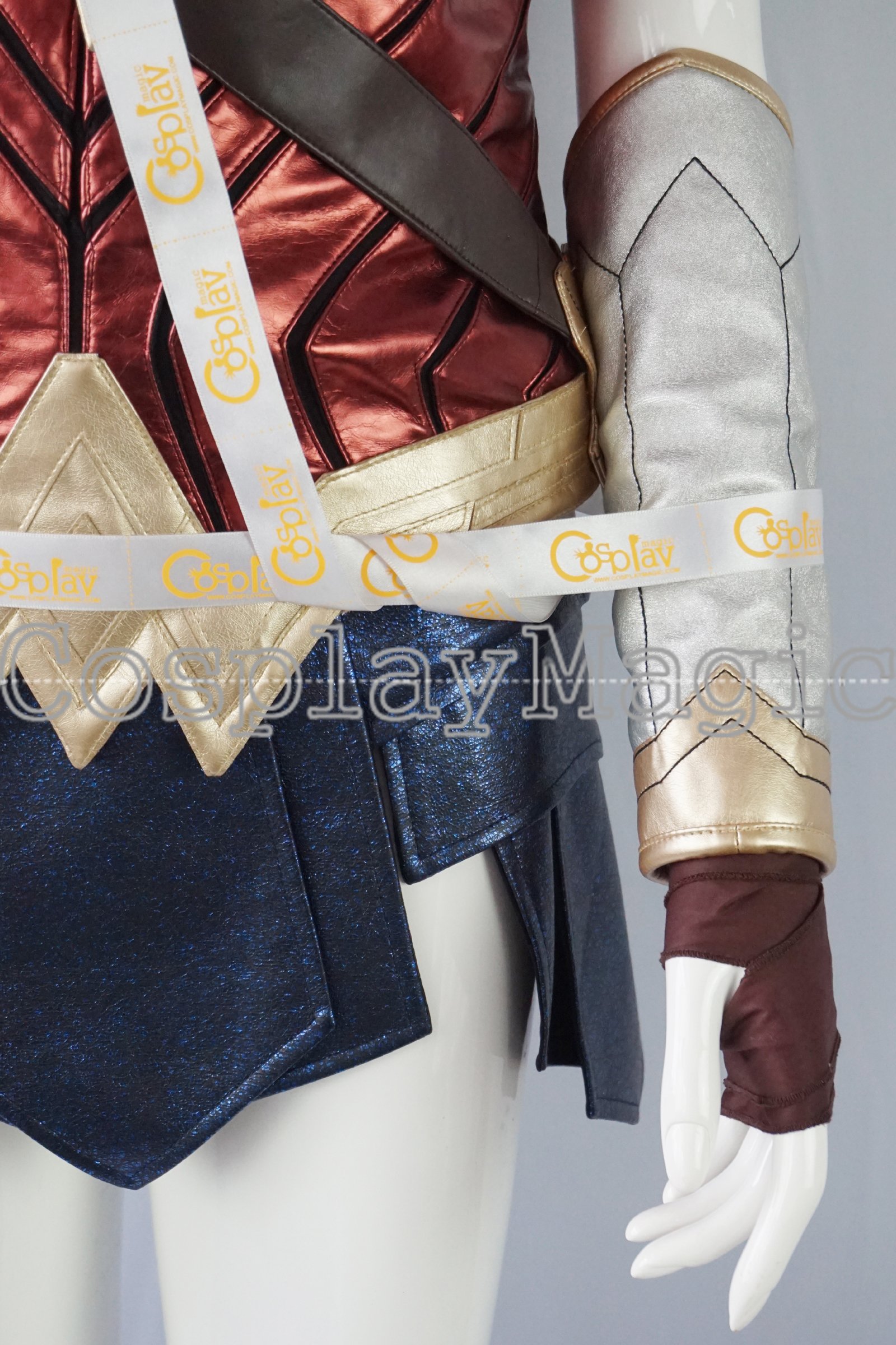 - Brown hand bandage with grey faux leather arm protectors